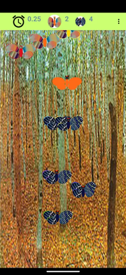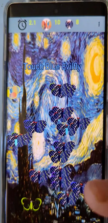 Use your finger to touch evil butterflies in the order of a rainbow ( red, orange, yellow, green, blue, indigo and violet ) as they fly with speed and