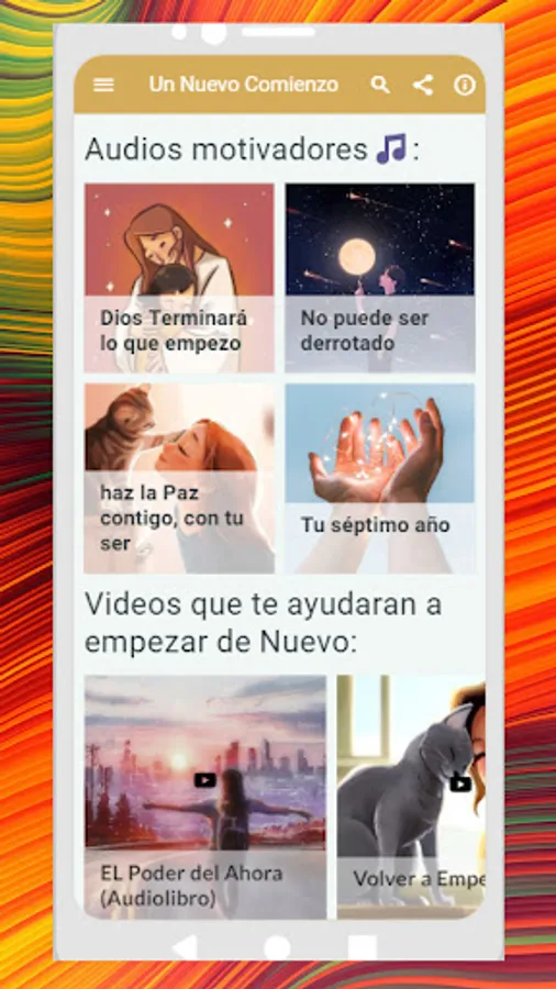 In this app you will find step by step how to get up after making wrong decisions or having gone through some kind of failure. It is made so that you can consult it wherever you need it, since it has audios, videos and beautiful readings.