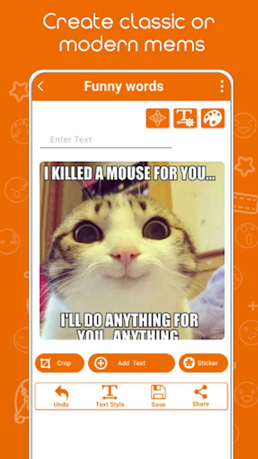 You can Create Memes by importing an image from a camera or gallery and can edit it as per your need with Meme Generator Free - Easy Meme Maker app.