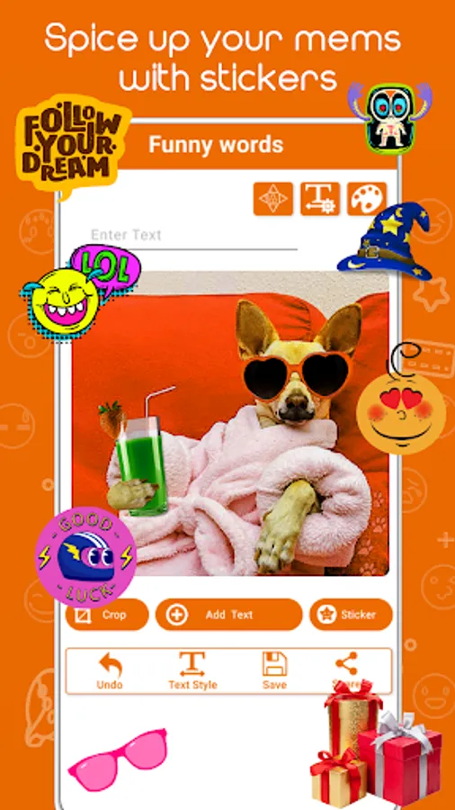 It's time to show your imagination and share the funniest thoughts you have with your friends. We specifically created this Meme Generator Free - Meme Creator app for those who make their own memes. Meme Stickers - Meme Generator Free app can be downloaded and used immediately by those with a lot of imagination and creativity to start making memes. We made it easy for them.