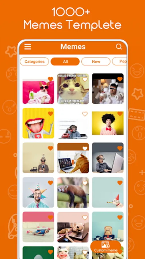 Create Memes is an act of fun, and it has become a trend nowadays. We saw many Funny Memes - Meme Stickers daily that circulate around different social sites. If you are a meme lover and wanna make some Funny Memes of different categories then you reached the right place, because the Meme Generator - Meme Editor app lets you make different amusing and hilarious Meme Stickers quickly and easily. Having more than 50+ Memes templates of different categories with captions makes the Create Meme more amazing. Now you can make your own high-quality Funny Memes with ease by Meme Generator - Gif Memes app. Moreover, you can make custom Funny Memes or Meme Stickers also with the help of Meme Creator - Meme Builder and share them with your friends over social sites and save them in your phone gallery.