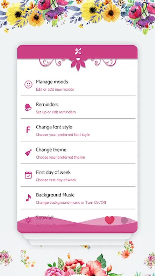 - Snowfall functionality to enhance diary looks