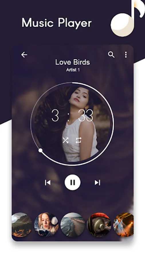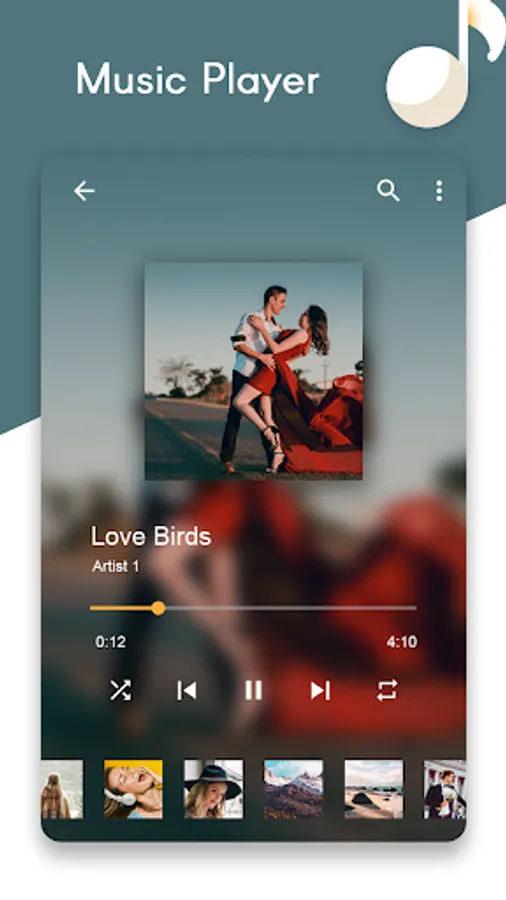 The background image can be set to a photo or image files taken with the camera and photo gallery. Changing to match the songs and photos, you can hear the song. It is an amazing concept of photography in mp3 player to set your photo or your lover photo whatever you like to set, you can set easily. It comes with music player equalizer settings using which you can have best dj music player sound and customize the music player sound effect as you want.