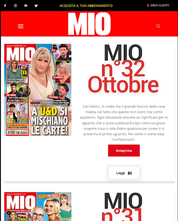Mio magazine deals with current affairs, the entertainment world, the political, cultural, artistic, religious world, fashion and beauty trends.