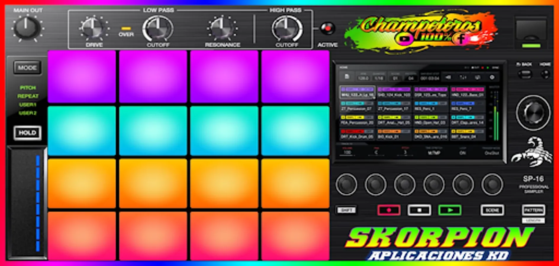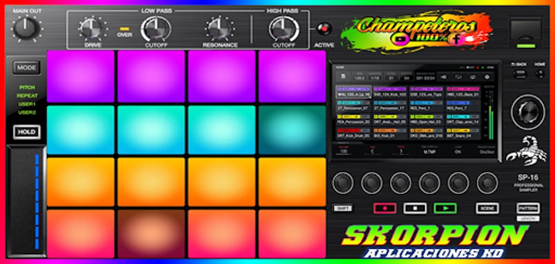 Skorpiano Drums and Sampler, with classic and new sounds for the best Champetero waver.