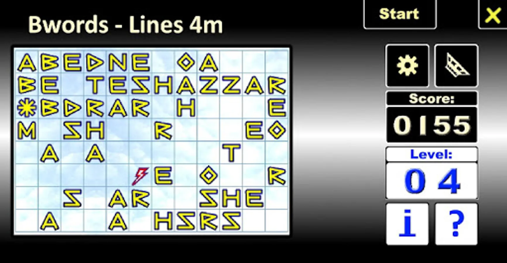 Bible Word Game. Rearrange the letters to form the “words” corresponding to the task of the current level. After the move, randomly selected letters from the task appear on the field. If a program finds the composed word from the task after you move, this worddisappears from the field and points are awarded to you. The words can be composed in any direction. The game has 12 levels (12 tasks). There are a number of searched words corresponding to the level number of each level. The information about the current task can be viewed by pressing the "i" button.