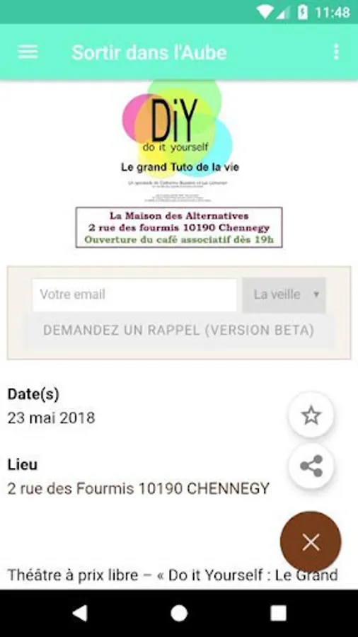 Out into the blade, it is indispensable application to exit in Aube; Troyes as in the rest of the department. You can search events by key words, dates and / or locations.