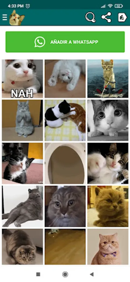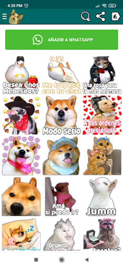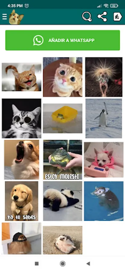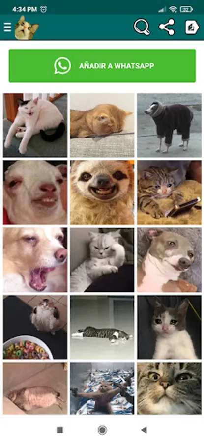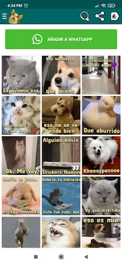 Cat stickers, dog stickers, horse stickers, cow stickers, zebra stickers, funny animals, animated, fun, memes, webp images, positive mode and among others more.