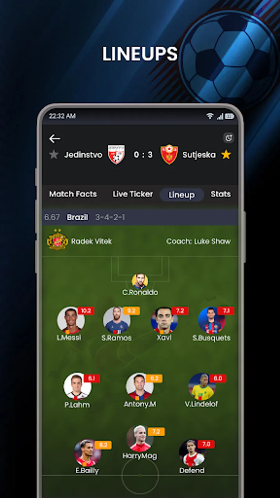 Coverage of all matches of different leagues matches around the world without paying anything the Soccer Live Football Scores app is all you need for live football matches and leagues. For soccer lovers, this is an awesome opportunity to follow their favorite team and watch all their matches.