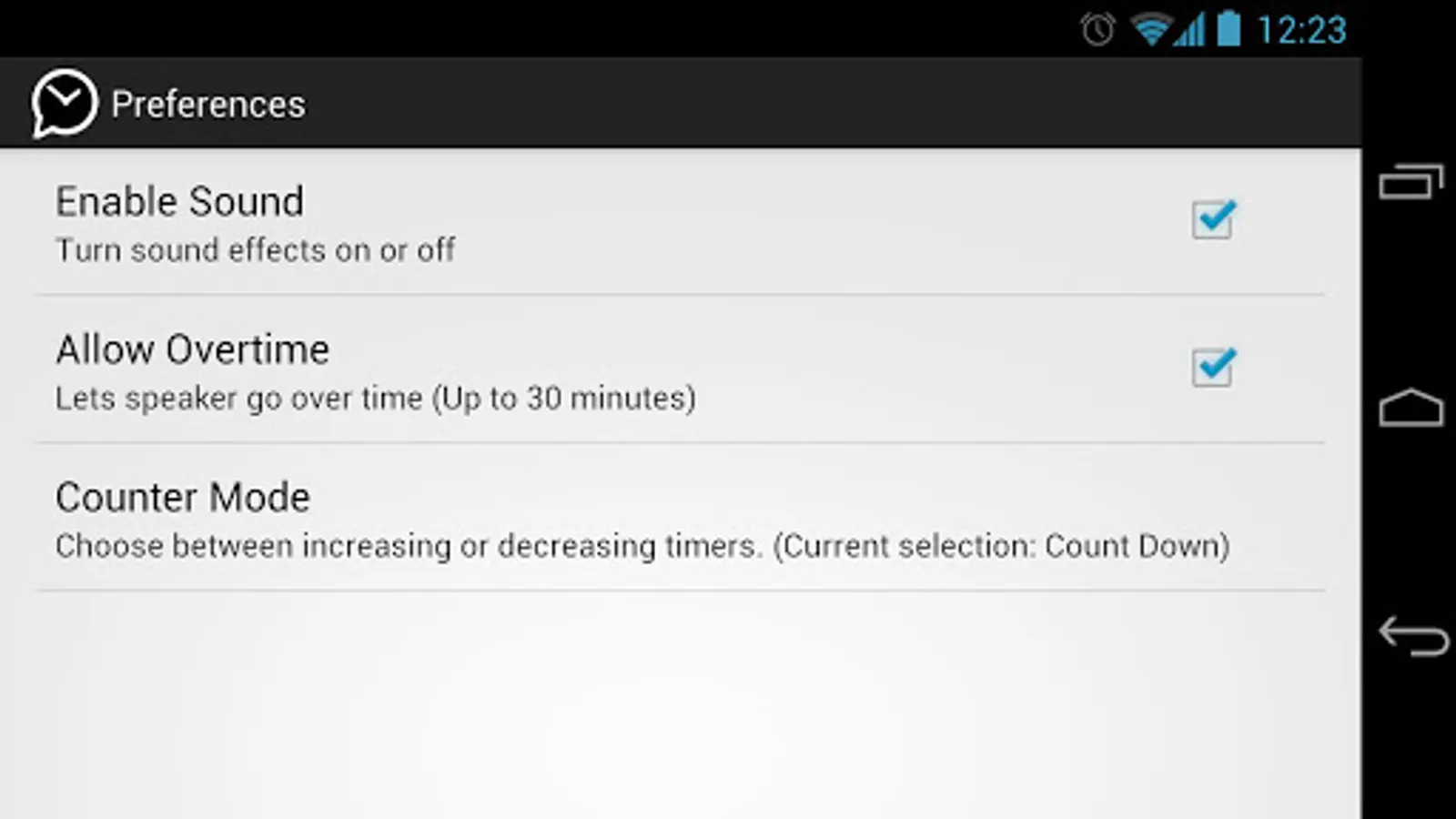 Use Talk Timer to keep talks, speeches, debates, or seminars on time.