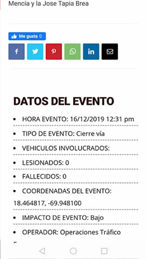 Company founded by Teo Veras and José Urtecho (Captain Urtecho), with more than 33 years of experience in transit reports in the Dominican Republic, serving with enthusiasm the events generated in our platform with the aim of keeping you informed at all times. Our coverage is focused on the Great Santo Domingo, major highways and provinces, tracking traffic events just at the time it occurred.