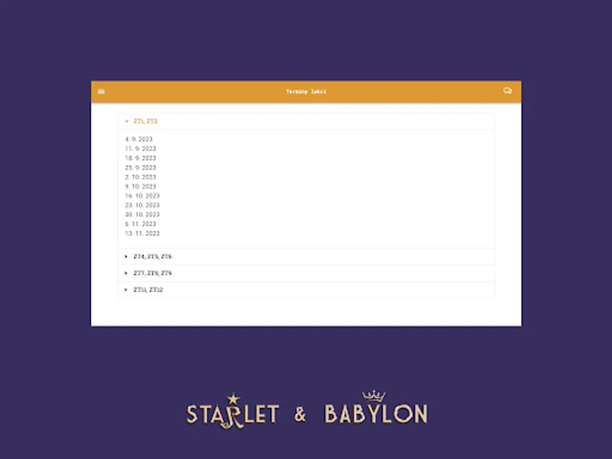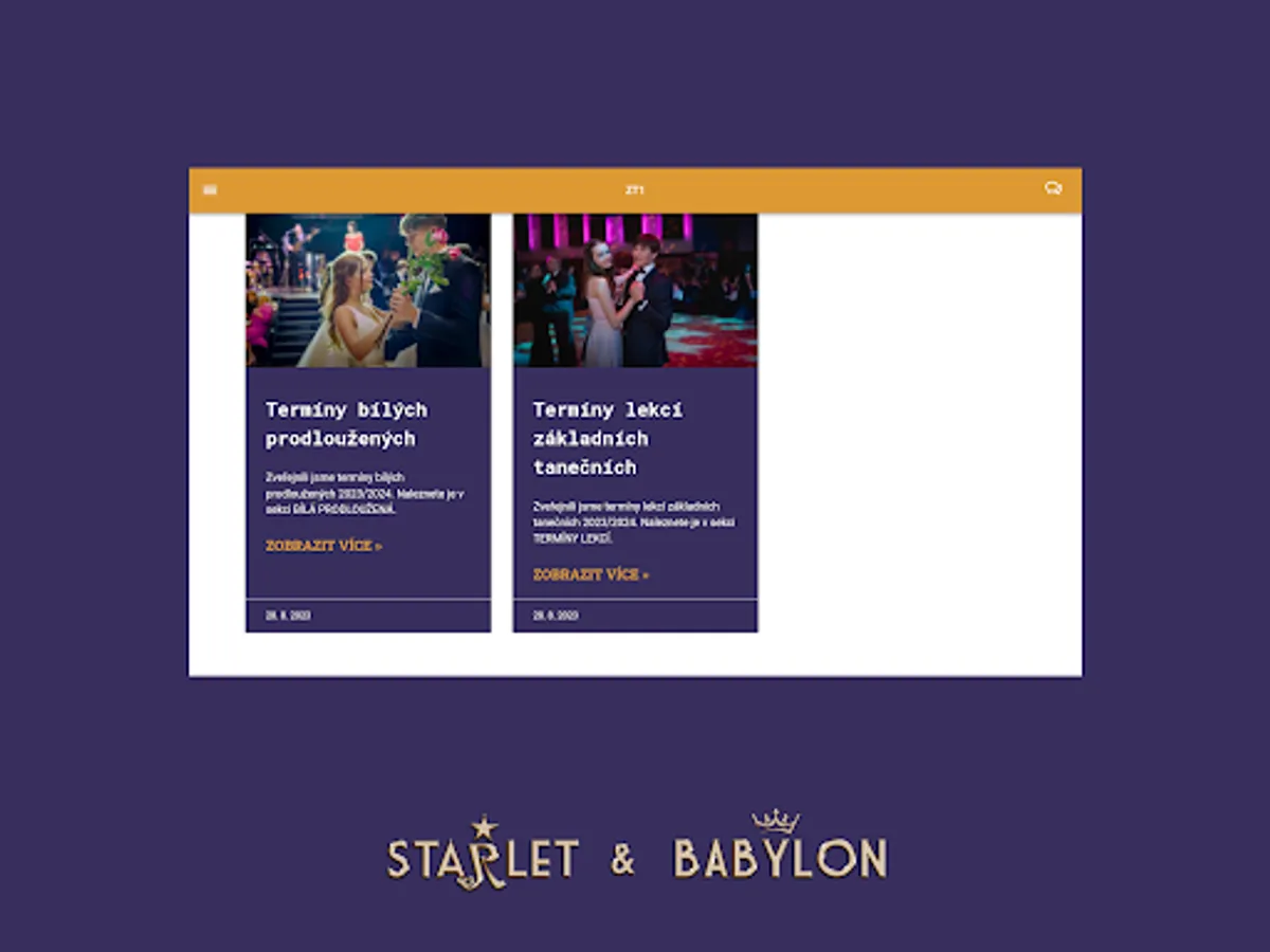 Application for high school dance students organized by the STARLET Dance School and the BABYLON Social Center. Thanks to the application, you will find all the necessary information about dancing in your pocket.