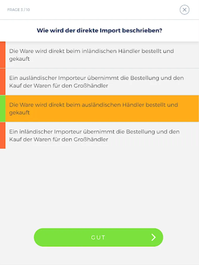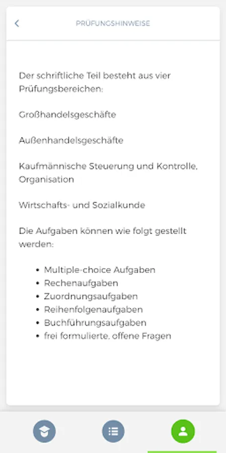 With these options, the "Wholesale & Foreign Trade Management" app is an optimal learning aid for passing the theoretical intermediate or final examination at the Chamber of Industry and Commerce.