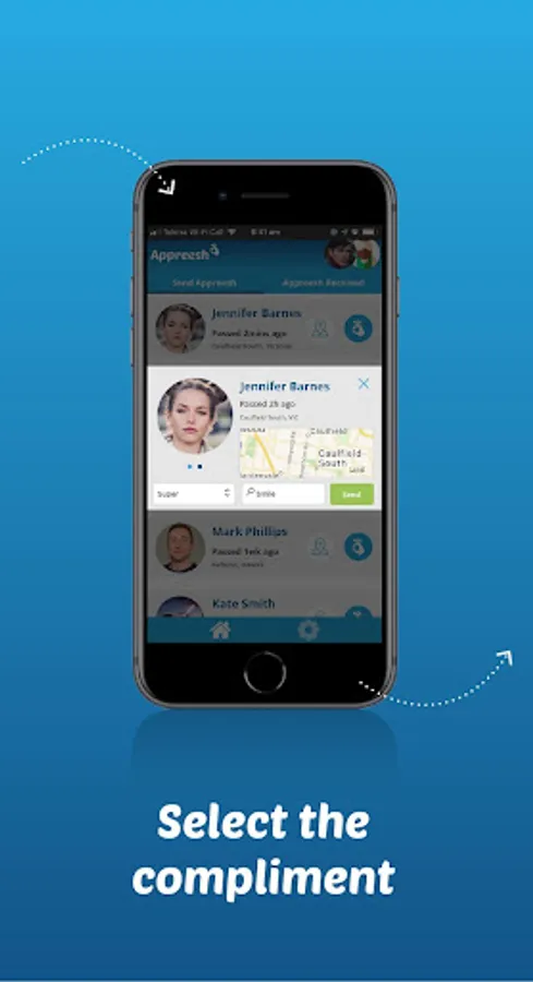 Appreesh will automatically create a list with people that pass near you. Once you see the list, you will be able to choose who you want to send a compliment to. This way you can brighten up someone else’s day and feel a sense of immense gratitude. We want to make it easy for you to breach the communication barriers and connect with random people, compliment them and just boost your self-esteem.