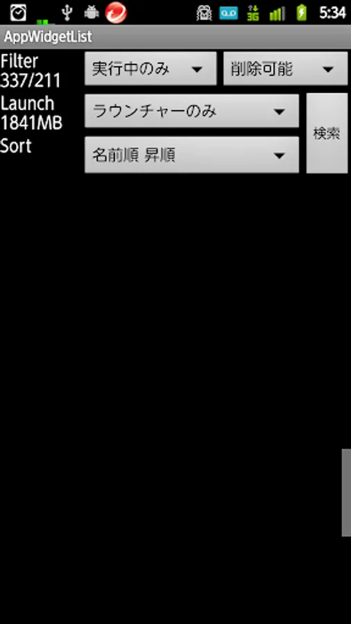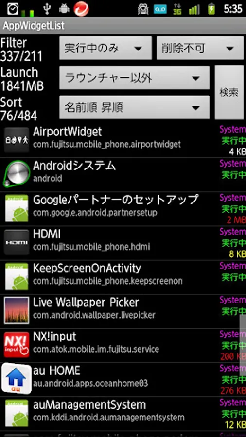 ・ソート順指定 (アプリ名昇順、逆順、データサイズの降順、コードサイズの降順)
