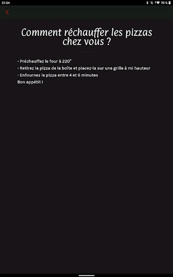 Whether you want to enjoy pizza hot in just 3 minutes or fresh to cook at home at 240 degrees, our app gives you an exceptional dining experience.