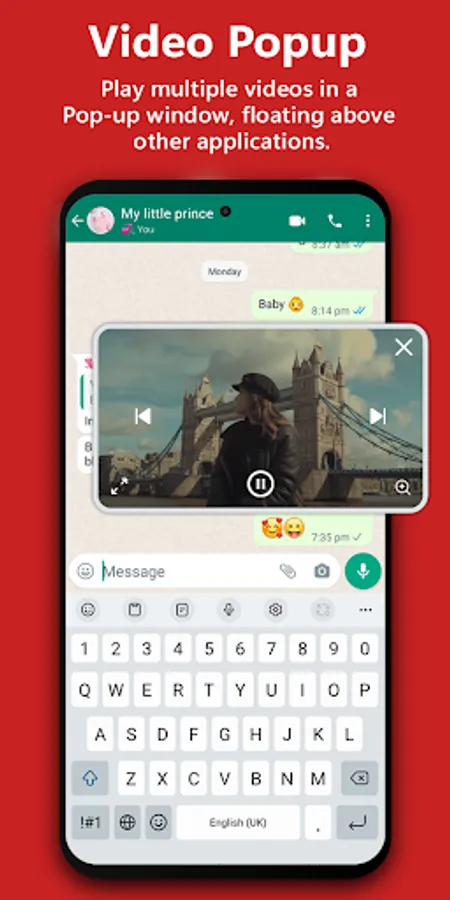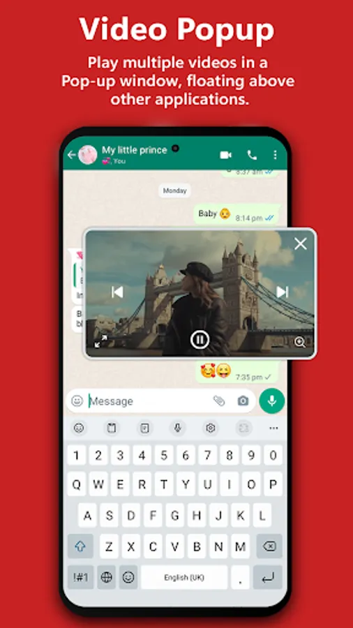 Video popup enables multitasking. The floating video player overrides other apps and it can be moved and resized easily. Enjoy video on the split-screen and use other apps as usual.