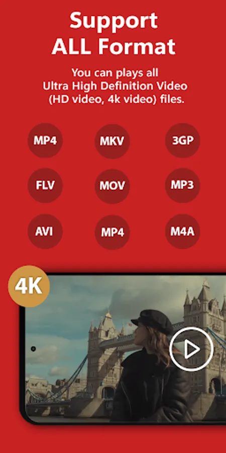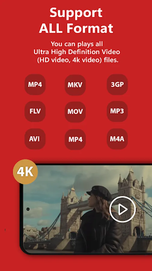 Powerful video player and music player with multiple advanced hardware acceleration and subtitle supports and all type of video with extra hd results. Video Player All Format supports ALL video formats, 4K/ultra HD video files, and plays them in high-definition. It is one of the best HD video players for android tablets and android phones.