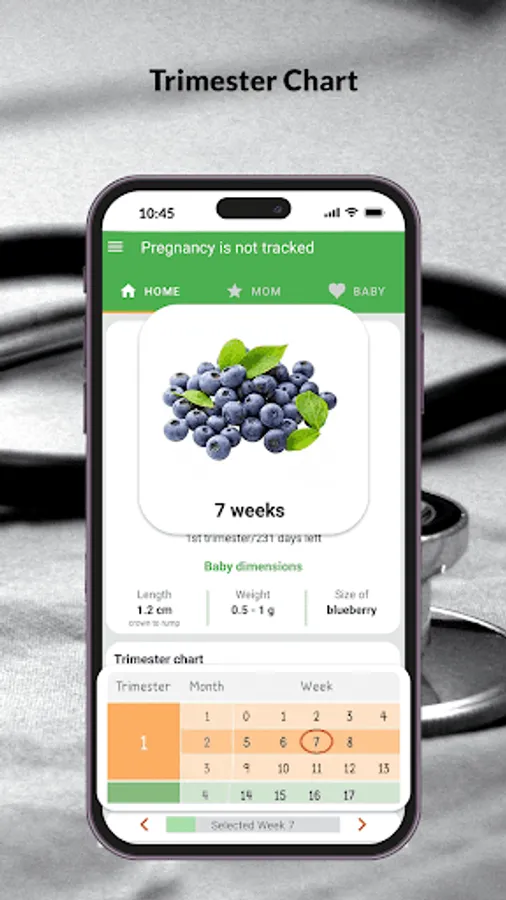 • 🍓 Themed baby size comparisons and visual countdown for each week of your pregnancy