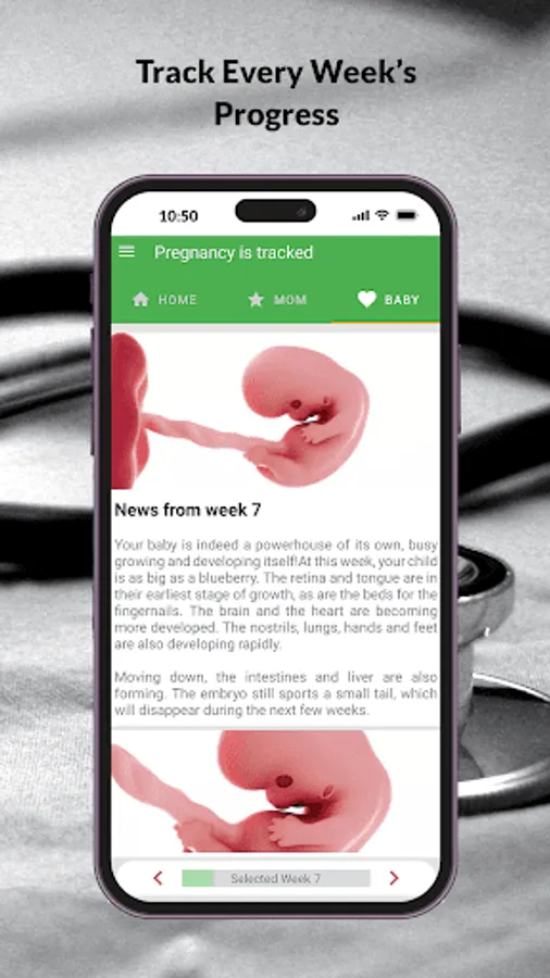 • 📺 Videos showing the baby’s growth and development during each week of pregnancy