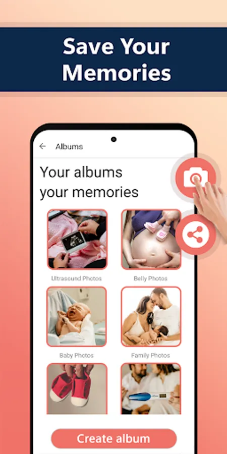 • Track your growing baby bump throughout pregnancy with a weekly Bumpie photo