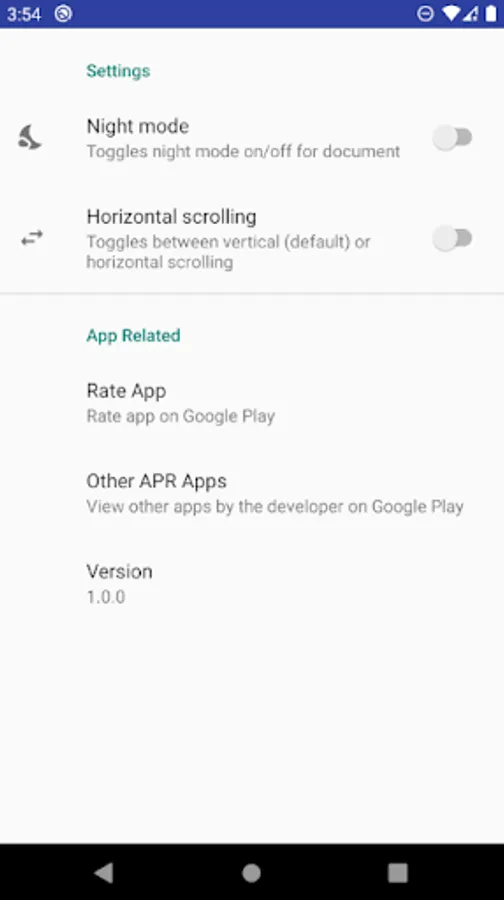 - Toggle between vertical scrolling (default) and horizontal scrolling of the document on the settings page.