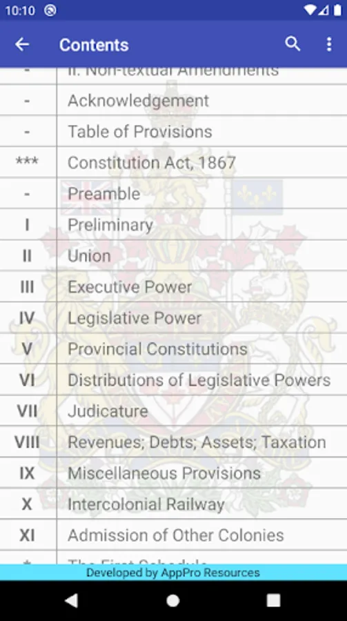 The Constitution of Canada PRO - APR app is an application meant to serve as an educational, general and/or reference resource for users to learn about the Constitution of Canada.