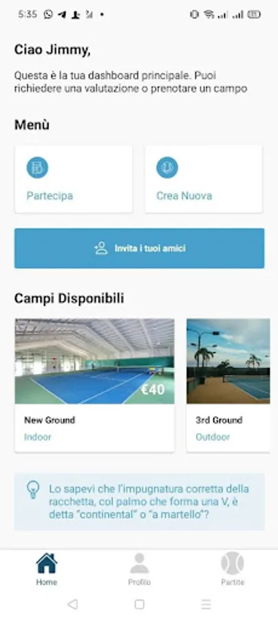 - Prenotare un campo direttamente dall'app
