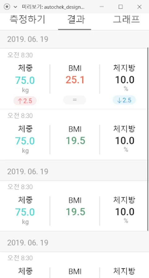 Do you have an Autotune Bluetooth Body Fat? You can automatically record the measurement results in the app. If you don't have one, you can enter it by hand. It is easy to tell the state of recorded body composition by color or graph.