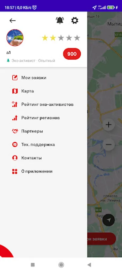The application also maintains a rating of users - eco-activists who are assigned stars and statuses: