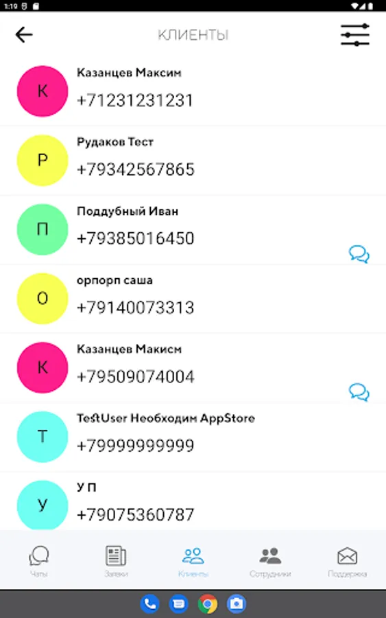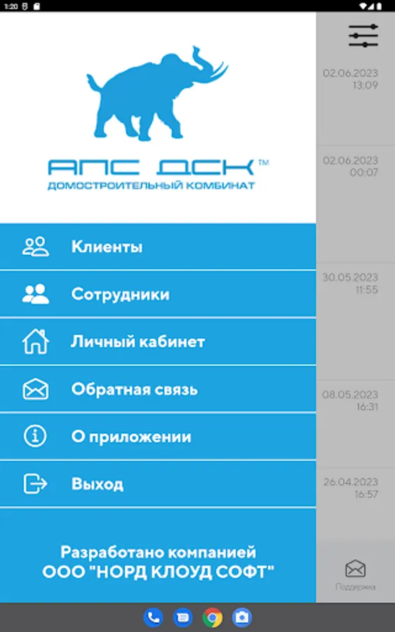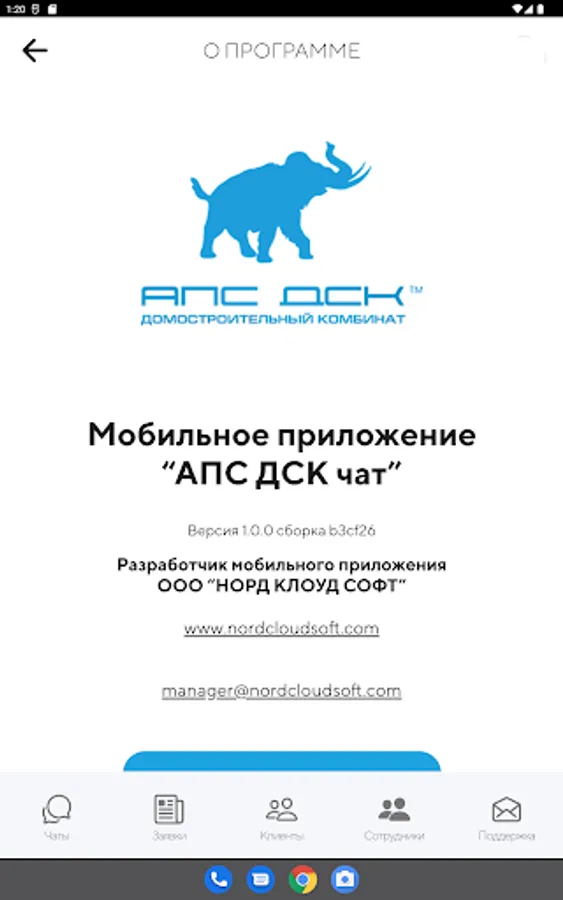 This mobile application is a service application and is intended for use only by APS DSK employees. It is less convenient to communicate with clients in a chat through the "Admin panel" web-interface, so a mobile application was made for employees to chat between clients and employees. Clients write their messages in the APS DSK mobile application, and employees can write in the APS CHAT mobile application or through the web interface.