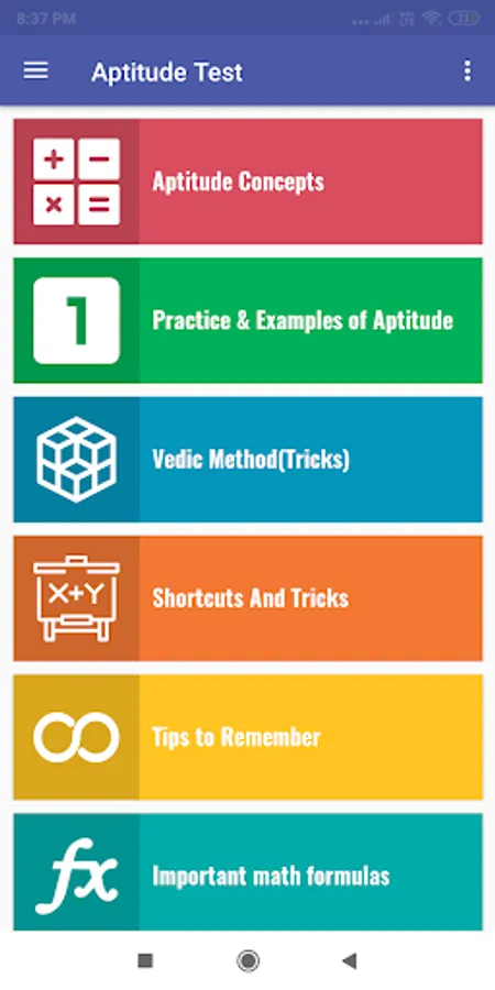 Quantitative Aptitude app or general math have given Quantitative Aptitude Study Material helpful for all exams. 'Aptitude Test and Preparation', Tricks & Practice - the best aptitude app with solutions and short tricks to enhance your aptitude skills and to sharpen your brain. Learn what aptitude tests are, how can you prepare, and practice free online aptitude test or general math/mathematics questions.