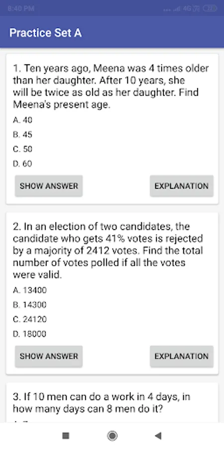This application has inbuilt Aptitude or general math Tips and Tricks, Logical Reasoning Tips and Tricks with Clear and detailed answer and explanation for every question with Daily Practice test. Quantitative Aptitude Study Material or general math/mathematics questions for Competitive Exams Free.