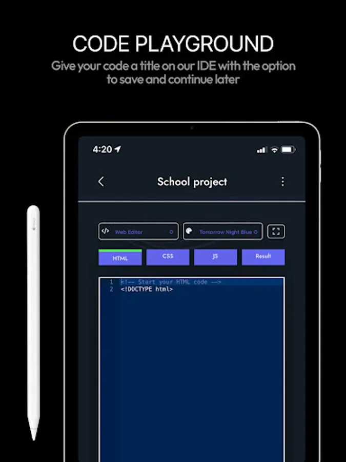 aptLearn Code IDE allows you to build, test, and share codes and collaborate with peers while also having fun and learning with others.