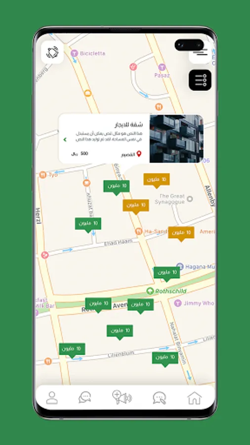 - A personal file for individuals, institutions and real estate companies to display their properties and requests in the form of lists or maps, as well as preferred and distinctive real estate and notices.