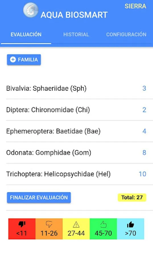 We are a group of biologists, which in the last 10 years has generated information on the use of biological indicators to assess the quality of aquatic environments in Peru. This application is used to identify families of aquatic larvae of macro-invertebrates (“bioindicators”) through images. Each family shows different degrees of pollution tolerance, which is represented by scores. The sum of scores allows calculating the quality of rivers and lagoons, which will be transmitted in real time to a georeferenced virtual platform for public access. Following this intuitive procedure, users can quickly diagnose the quality of a body of water, generating relevant information for decision-making about its use and management. AQUABIOSMART will be validated through interaction with different social actors involved in environmental monitoring.