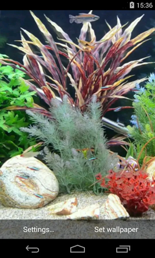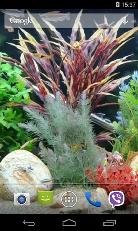 A 3D rendered live wallpaper background of a fish tank, with beautiful backgrounds and smooth motion.
