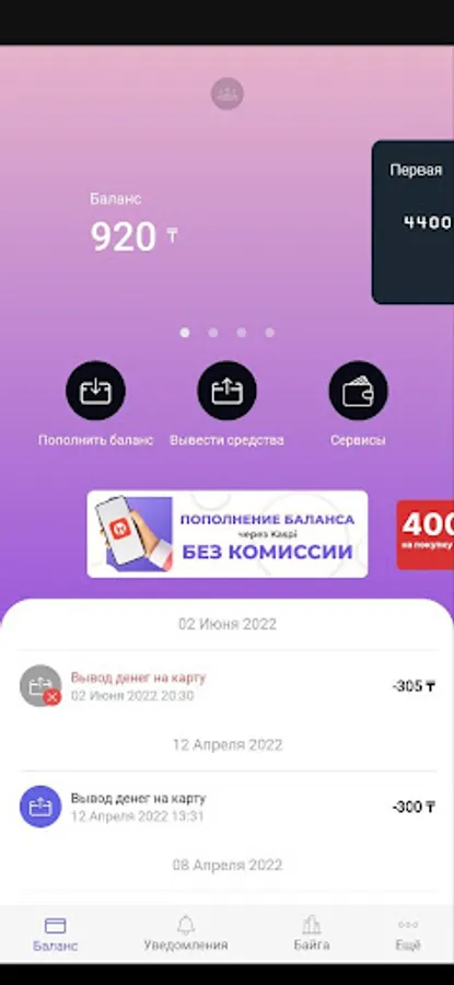An application for the withdrawal of funds for drivers working with the Aqzhol Taxi fleet.