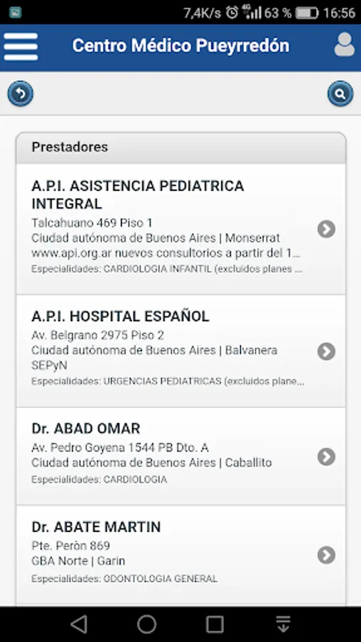 - View the list of the Pueyrredón Medical Center branches by Zone.