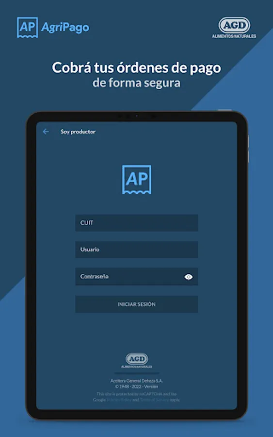 If you are a supplier of Aceitera General Deheza S.A. Request more information from your commercial officer, if you are not a supplier, send us your contact information to the following email registrarAP@agripago.com.ar and we will contact you as soon as possible.
