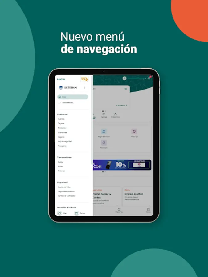 Generate your username and password from the same App, without having to go to the ATM. You can make your Login with biometric data, (Fingerprint or Facial Recognition) according to the technology of your mobile device.