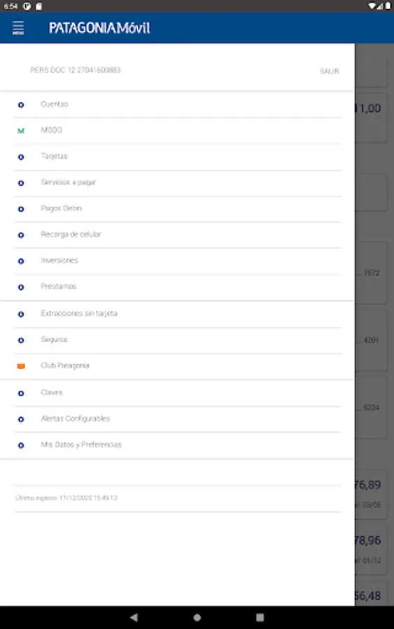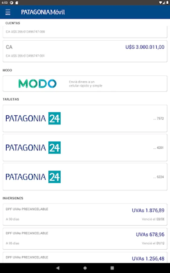 You can access with the same username / document and password as in Patagonia eBank Personas and carry out the following operations: