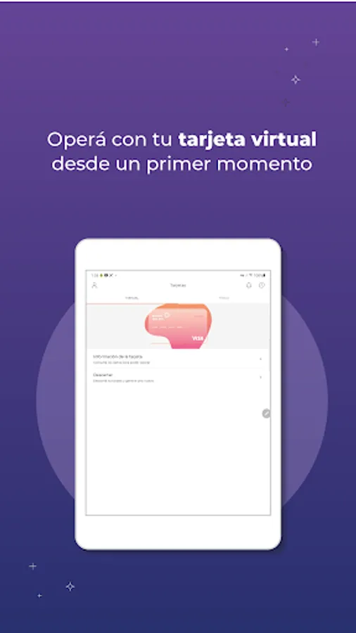 From the application, you will be able to transfer and receive money, pay for services and recharge, invest in a fixed term, earn interest with your remunerated account, control the expenses you make with your Visa debit card and much more.