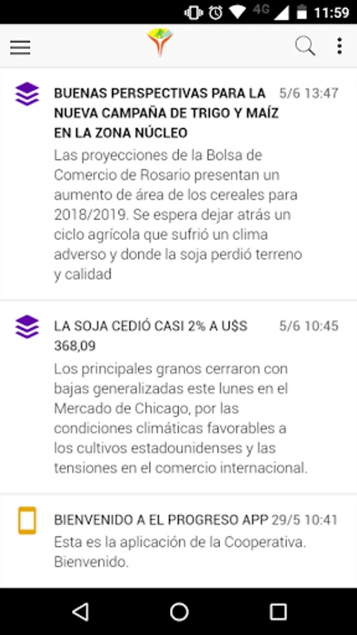 I received notifications, alerts, warnings and events Cooperativa Agropecuaria El Progreso Henderson Ltda.