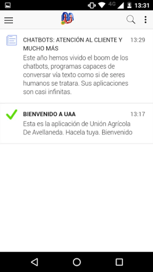 Application for mobile devices that enables partners and customers Coop.Ltda Avellaneda Agricultural Union. (Www.uaa.com.ar) receive notifications and access information related to their cooperative activities.
