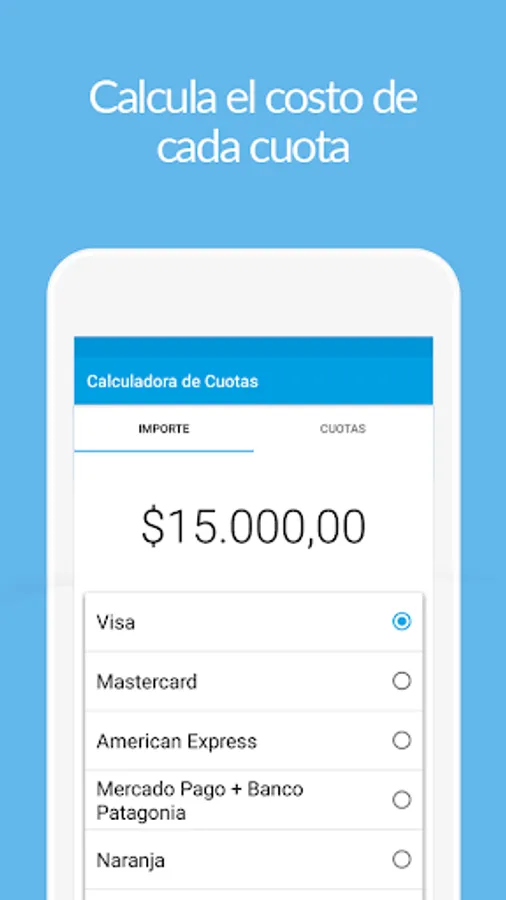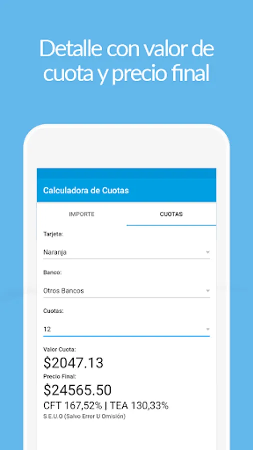 - It allows calculating the cost of payments with a Credit Card.
