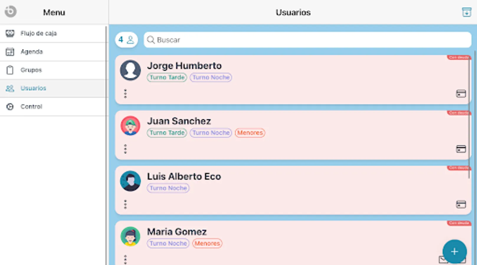 Bizy allows you to manage, organize, and analyze a company's information, including members, user groups, cash flow (inputs and outputs), attendance record, debt control, event schedule, and much more.
