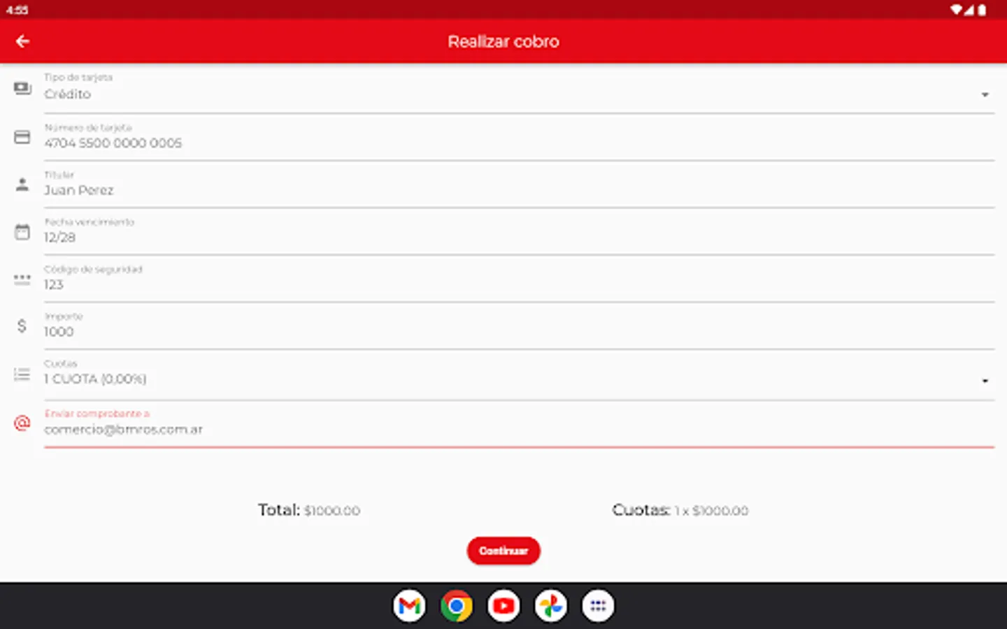 MuniPos, the Municipal Bank app, aimed mainly at businesses, which allows you to have a mobile payment tool from a cell phone. Sales can be made through credit and debit cards from any bank in a simple and agile way.