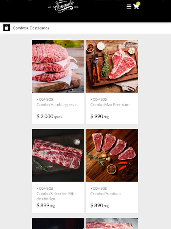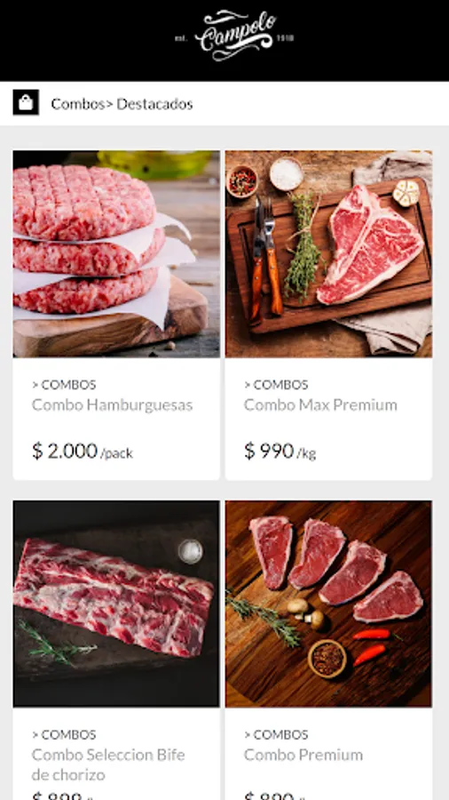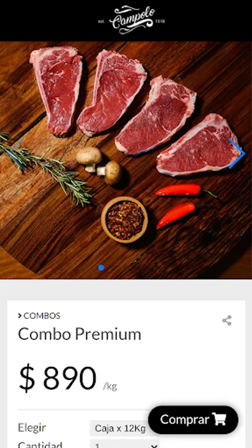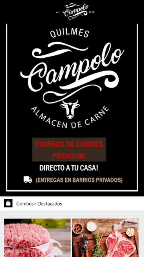 Campolo Carnes vende a través de esta app y reparte a domicilio en Zona Quilmes.