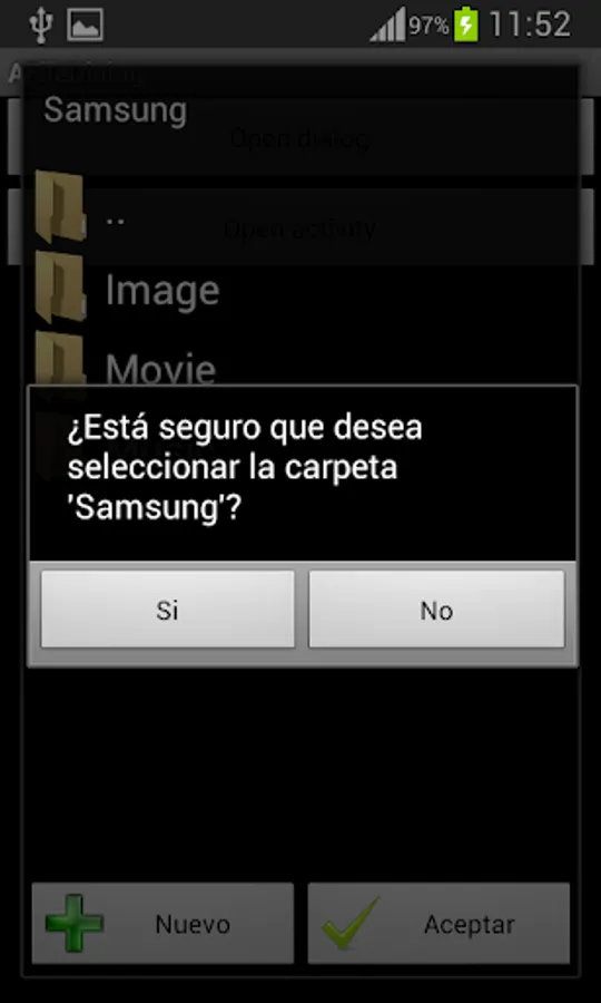 Demo application for "aFileDialog", an Android library which implements a simple and easy to use file chooser. More details in http://code.google.com/p/afiledialog/